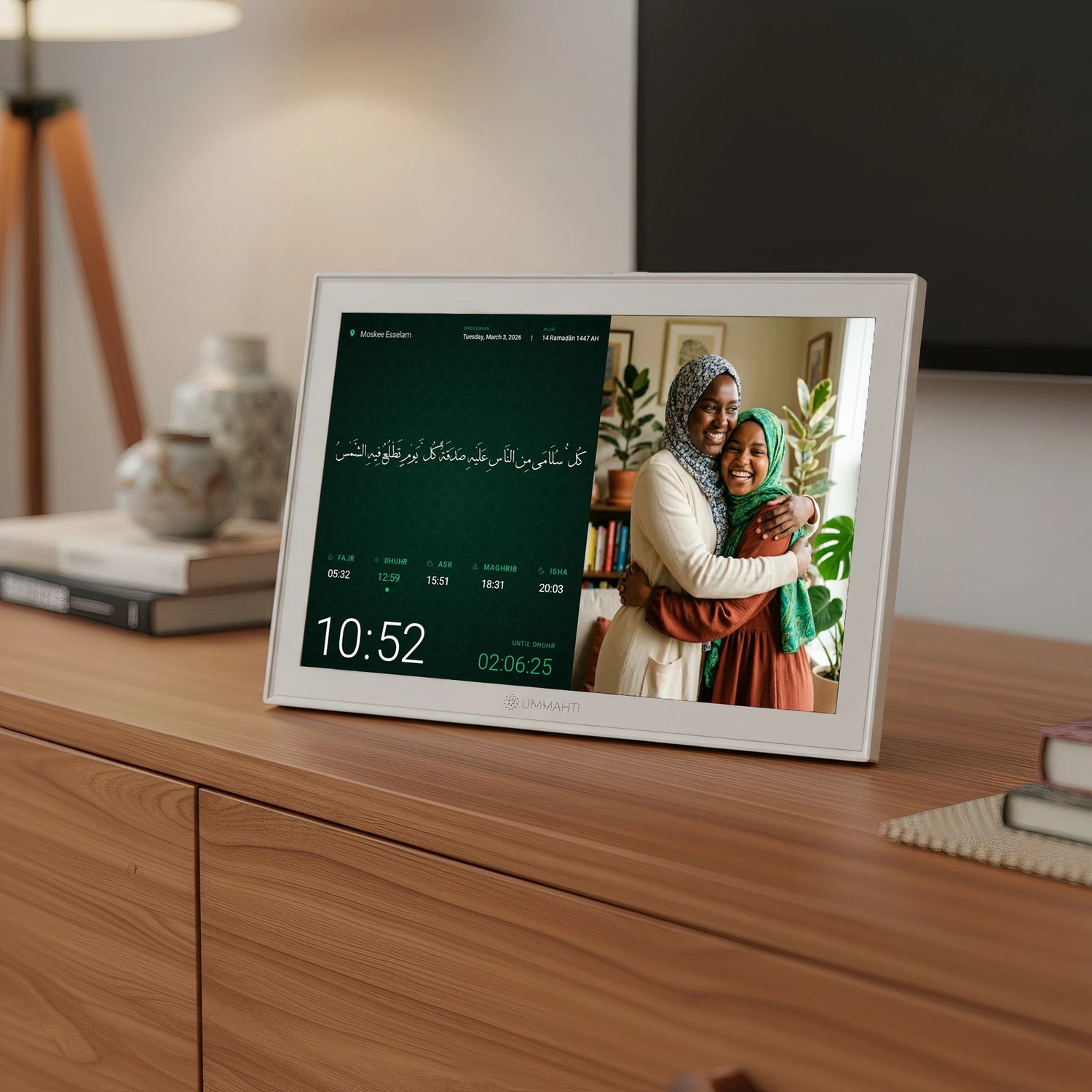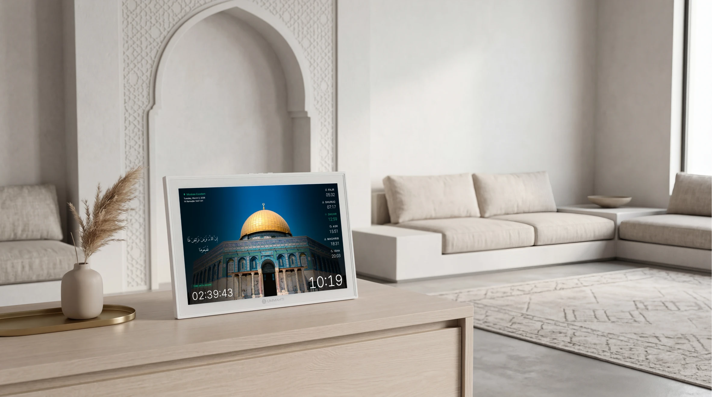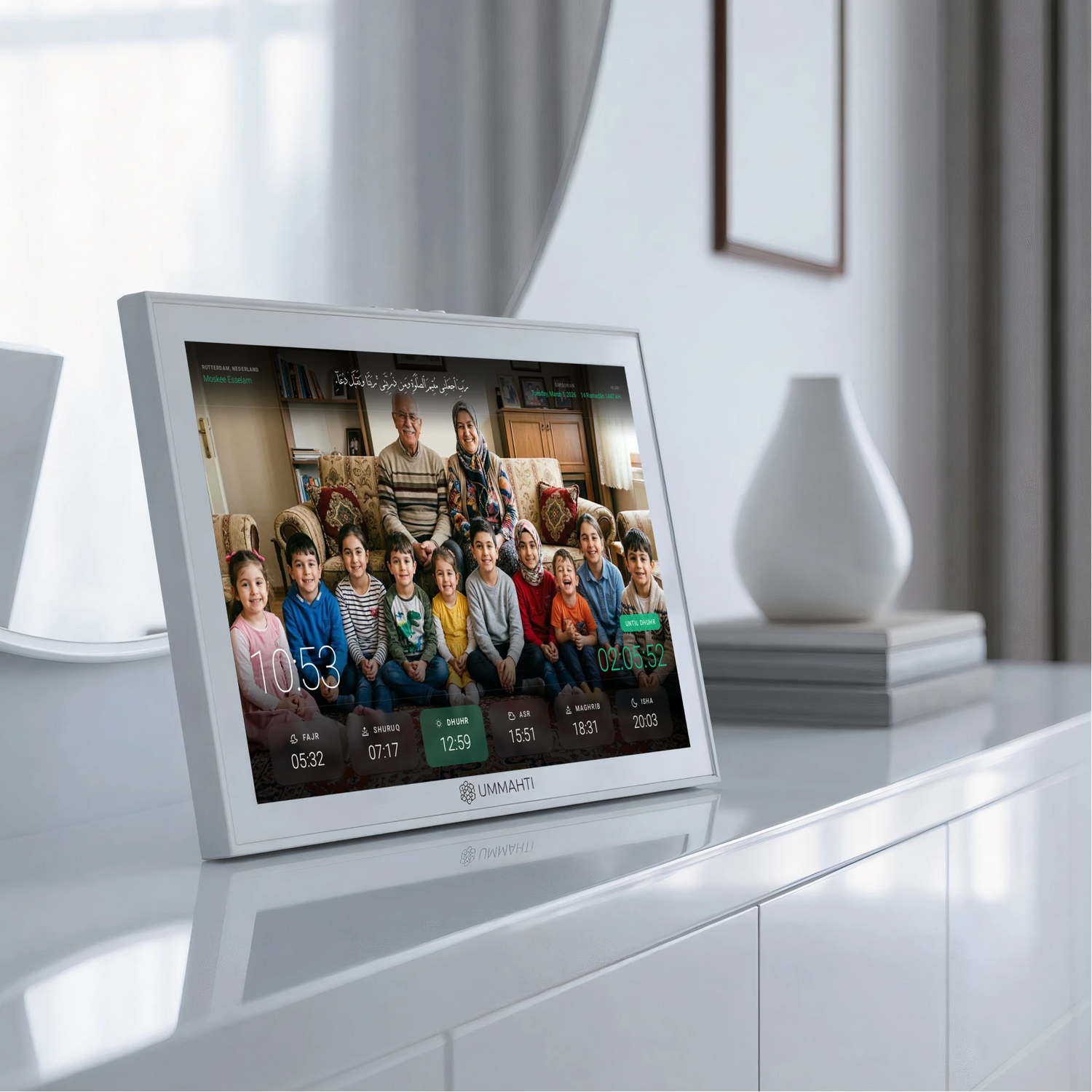 Always on time for prayer with Ummahti Adhan. Elegant themes, personal photos, multiple mu’adhdhins, Qur’an player, and control by app or touchscreen.